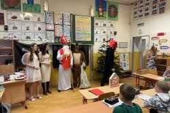 I do naší třídy 3.A zavítala mikulášská družina – čerti, anděl a Mikuláš. Některé děti se na návštěvu těšily, jiné byly trochu nesmělé, a pár odvážlivců dokonce čertům odpovídalo se smíchem. Přesto se našly i chvíle, kdy ukápla slzička. Čerti totiž zkusili dát do pytle několik zlobivců, ale díky přímluvě Mikuláše a slibu polepšení zůstaly všechny děti ve třídě. Na závěr Mikuláš rozdal dětem sladkosti a pochválil je za jejich píli a chování.