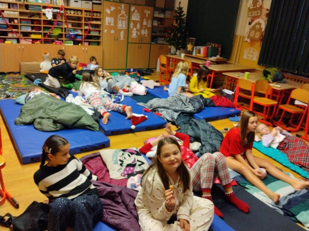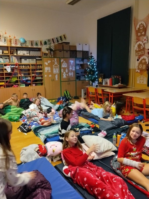 Vyvrcholením všeho byla tradiční přespávací vánoční besídka ve škole. Nechyběl andělský budíček našeho pana školníka a snídaně do postele. Byly to báječné dny plné smíchu a těšení se na Vánoce.