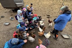 Děti se zapojily do péče o zvířata. Krmily ovečky, slepičky i králíky a zároveň pomáhaly s čištěním jejich výběhů. Vyzkoušely si tak, jaká práce je na statku potřeba každý den vykonat. Kromě toho se seznamovaly se starým řemeslným náčiním.