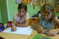 Ve druhé polovině dne se konaly výtvarné a jazykové dílny, při kterých žáci formou komiksů v anglickém jazyce zachycovali průběh představení, na jejich závěr proběhla společná výstava.