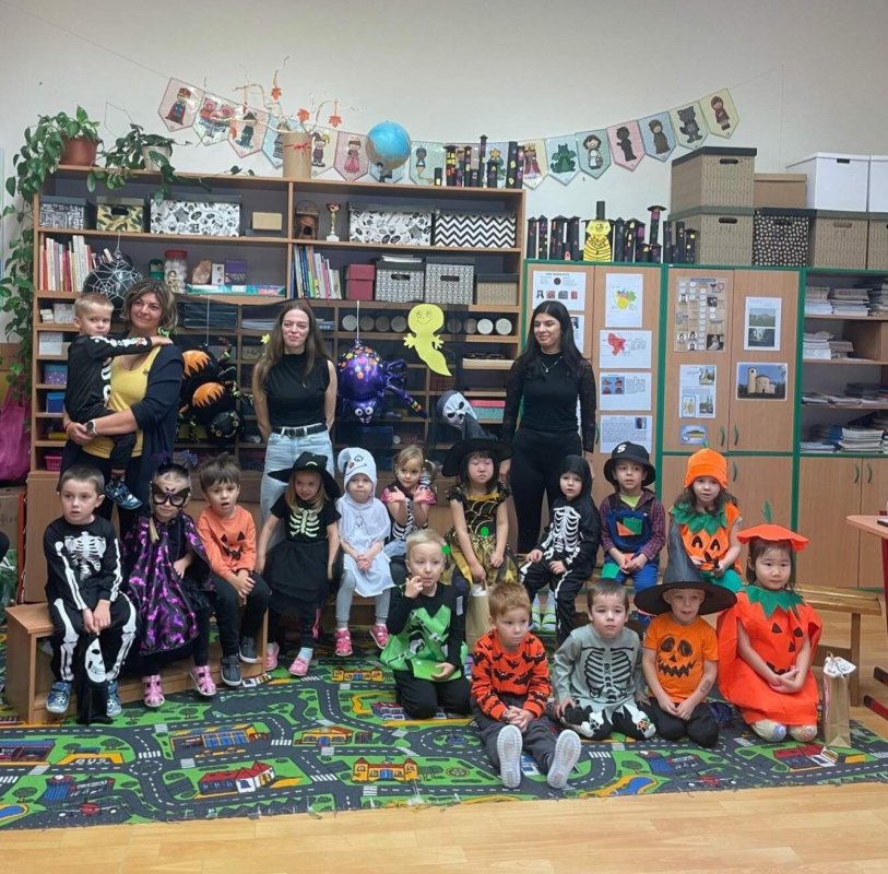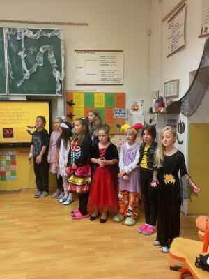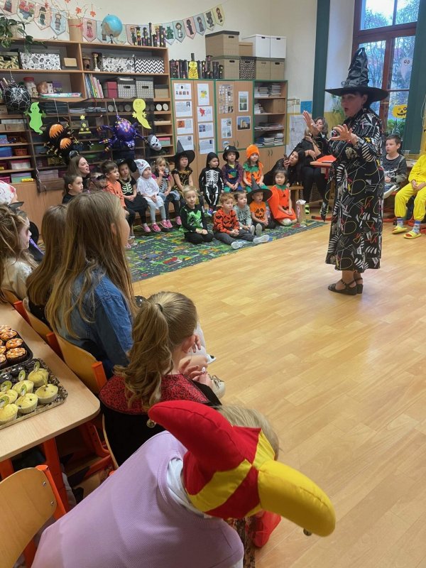 Na návštěvu k nám na první stupeň zavítala i malá strašidýlka z MŠ Roháče z Dubé. Malé čarodějnice, čarodějové a další roztomilá strašidýlka se zúčastnila strašidelného setkání a programu, který pro ně připravili žáci ze 4. B spolu s učitelkami Mgr. Hanou Pattersonovou, Mgr. Máriou Kubešovou a paní asistentkou Monikou Jedličkovou.
