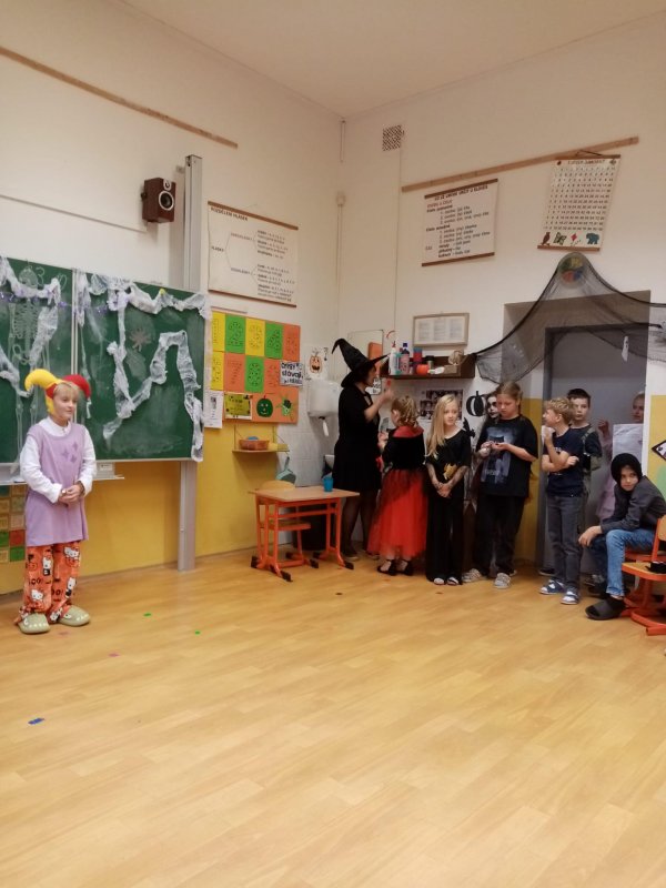 V pátek 24. října se naše škola proměnila ve strašidelnou Pátovku! Kromě žáků přišla do školy i různá strašidla a další zvláštní bytosti, které se s námi chtěli učit.
