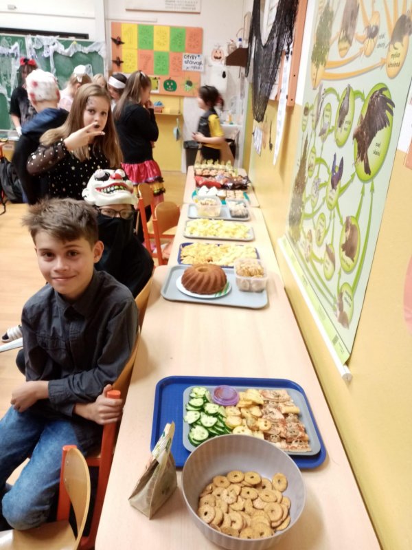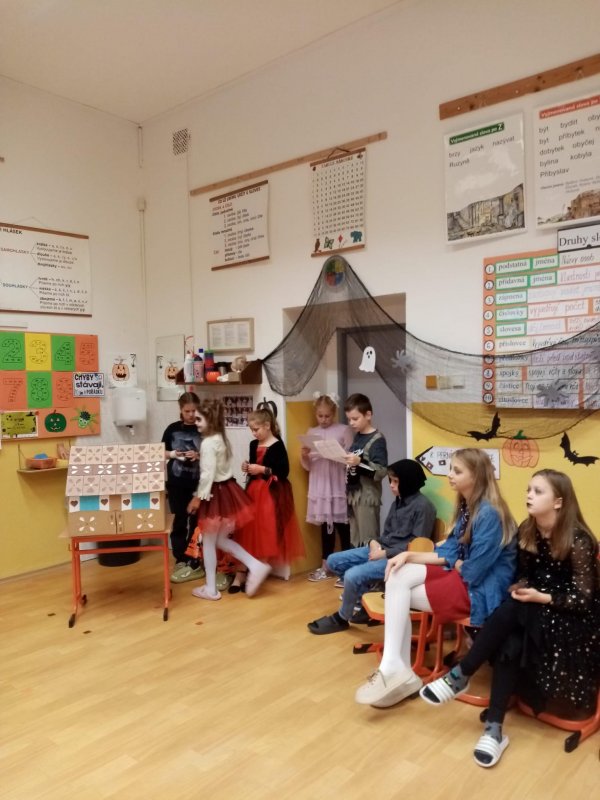 Žáci pro malé děti zahráli dvě pohádky ze strašidelného lesa, společně si s nimi zazpívali, zatančili a zakouzlili. Na závěr čekalo všechny strašidelně dobré občerstvení.