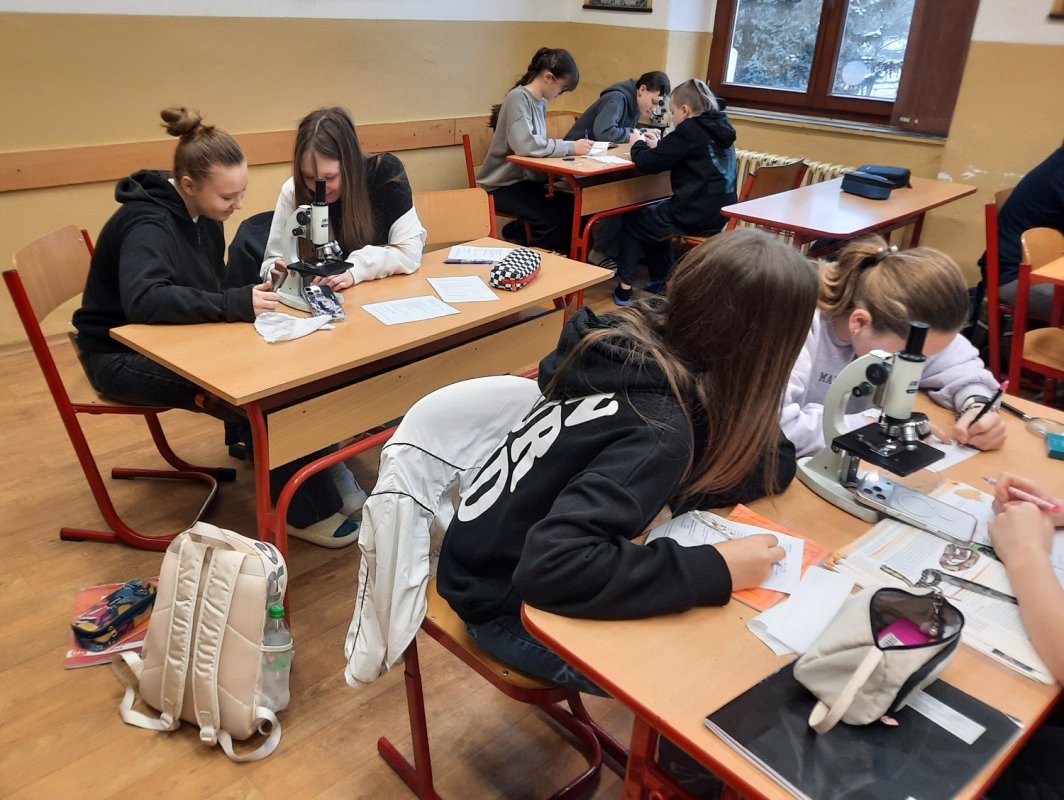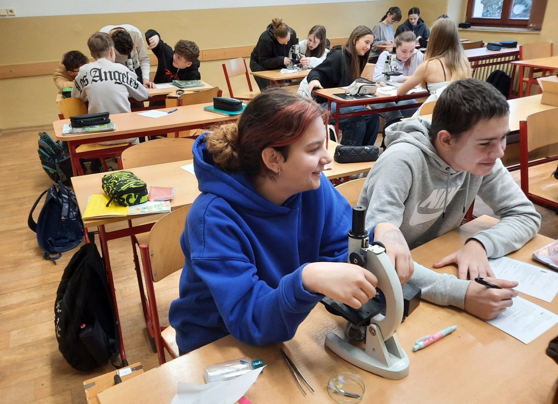 Mikroskopy jsou ve třídě vítány s notným jásotem. U sedmáků byl úvodník ke kapitole ptáků zaměřen na pokryv těla. Pod lupou a mikroskopem jsme se snažili rozluštit tajemství dvou typů peří našich opeřených krasavců. "A paní učitelko, které ptáky jste pro nás oškubala?" Ne, nebojte, materiál poskytli naši anduláci.