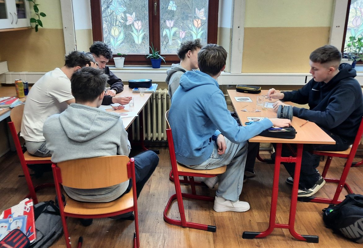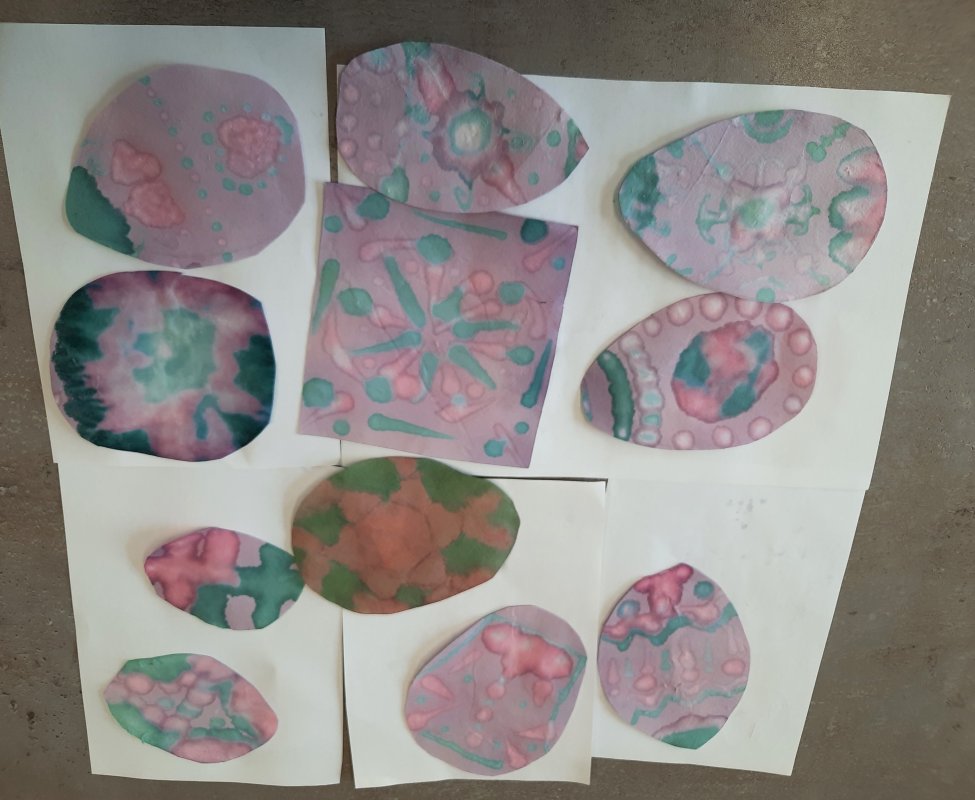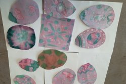 Velikonoční hodinu jsme nastartovali diskuzí o možnostech barvení vajíček ryze přírodními barvivy, předvedli jsme si v celé kráse červenou fluorescenci protoporfyrinu skořápky hnědých vajíček v UV světle, ukázku jsme rozšířili o modrou fluorescenci chininu v toniku a aeskulinu z větviček kaštanu a vše jsme završili tradičním malováním pomocí změny pH u výluhu z červeného zelí.