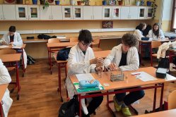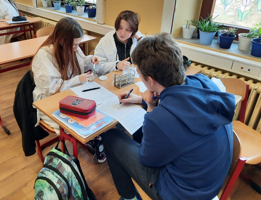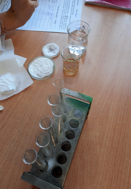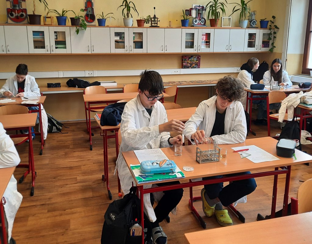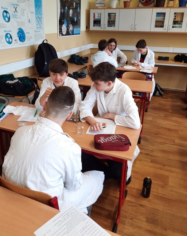 Dnes jsme zkoumali, jaké faktory mohou ovlivnit rychlost chemické reakce: teplo, množství látky, přidaný katalyzátor ... a také které reakce produkují teplo, které zase teplo spotřebují a vůbec jsme pozorovali, co se při reakci ve zkumavce či erlence děje. Překvapení následované všeobecným hlaholem nastalo při neočekávaném vybublání reakční směsi mimo zkumavku