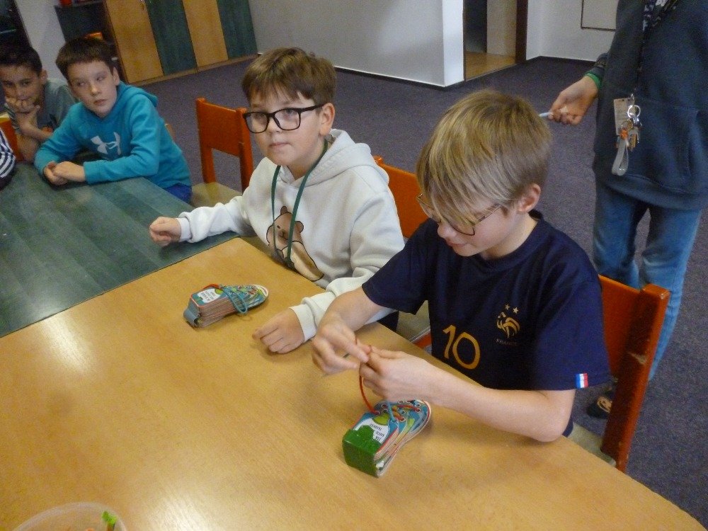 Naši šikovní prvňáčci už však tuto dovednost zvládají, a tak se mohli do soutěže pustit s plným nasazením. Poctivě jsme využili boty ze školní družiny a každý měl stejnou šanci ukázat, co umí. Ačkoli zvítězit mohl jen jeden v každé kategorii, patří velká pochvala opravdu všem – každý žák prokázal snahu a odhodlání, což je pro nás ta největší výhra.