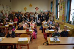 V pondělí 3. září začal na Pátovce nový školní rok 296 žákům, jejich pedagogům i správním zaměstnancům. Počasí dovolilo, aby slavnostní zahájení pro naše prvňáčky proběhlo na školní zahradě. Sotva doznělo první školní zvonění, představili se dětem a jejich blízkým třídní učitelka, paní vychovatelky, předsedkyně školské rady, zástupkyně ředitele a ředitel školy. Nechyběli ani naši žáci, kteří zpestřili slavnostní chvíle recitací a skvěle nazvučeným tanečním vystoupením. S pozdravem a přáním úspěšného začátku školní docházky zavítal i místostarosta našeho města, pan Mgr. J. Raninec. Ten předal malým školákům balíček se sladkostmi a škole defibrilátor.