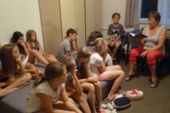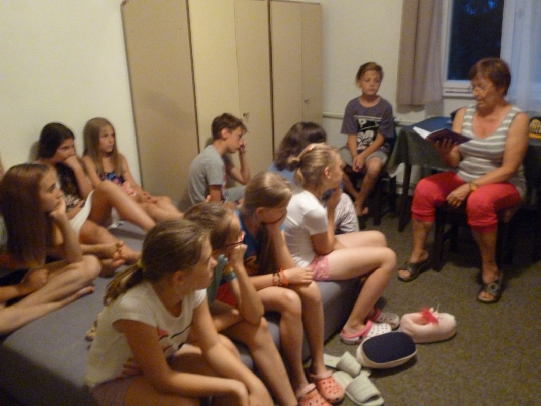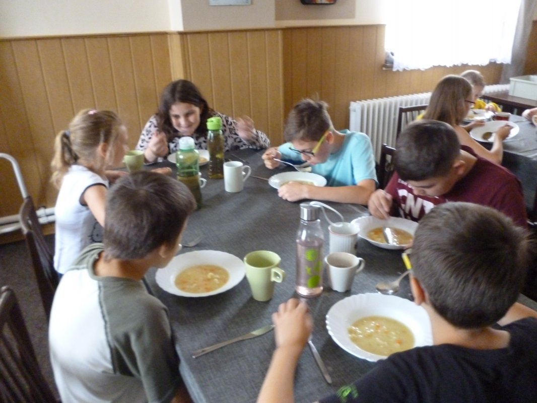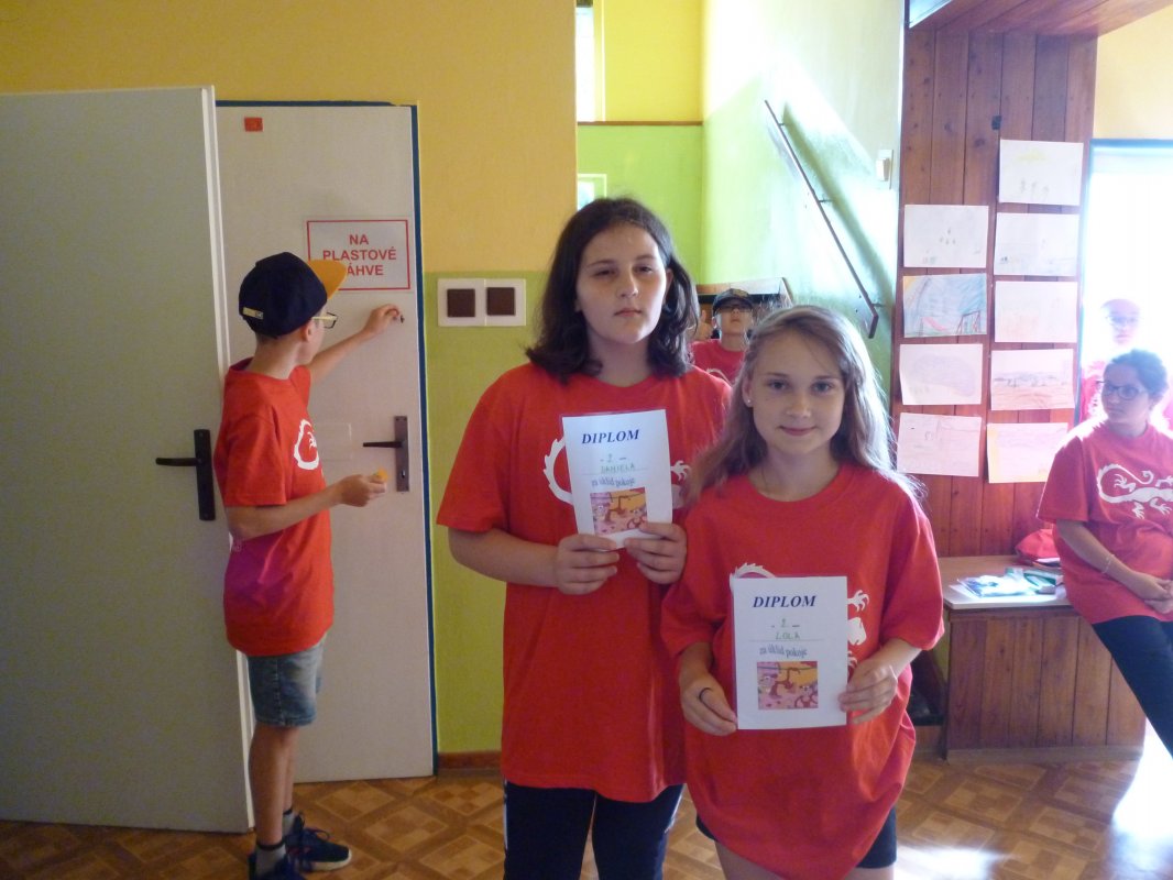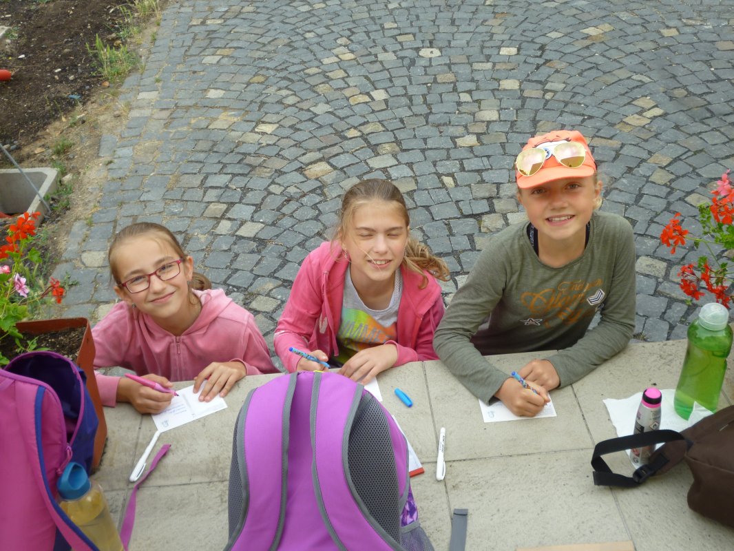Naše dny začínaly tím, že jsme vstali a šli na rozcvičku. Často jsme měli soutěže a výlety, trávili jsme hodně času na čerstvém vzduchu. Nejdříve jsme prošli okolí, abychom zjistili trasu. Učili jsme se hlavně po snídani. Byli jsme u jezera Chmelař, kde jsme si mohli namočit nohy, voda byla teplá. Další den jsme byli na Kozí farmě, kde nám paní vyprávěla zajímavosti o kozách a ovcích. Navštívili jsme Úštěk, tam napsali dopisy. Hráli jsme pětiboj a orientační běh. Další den jsme měli olympiádu. Večer nás čekalo překvapení od paní učitelky a paní vychovatelky, všichni byli nadšení. Předposlední den jsme měli celodenní výlet do Litoměřic, kde jsme měli prohlídku v podzemí. Před prohlídkou jsme šli na vyhlídkovou věž Kalich. Po vyhlídce jsme měli rozchod na náměstí a mohli jsme si koupit, co jsme chtěli. Poslední den jsme začali balit se slzami v očích, že tento zážitek končí. Čas běží dál a my s ním. Je to smutné, ale nezmění to, co jsme si tu užili.