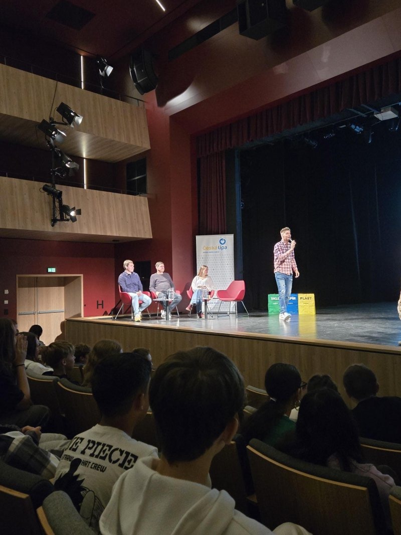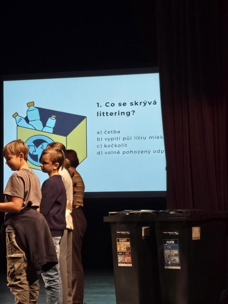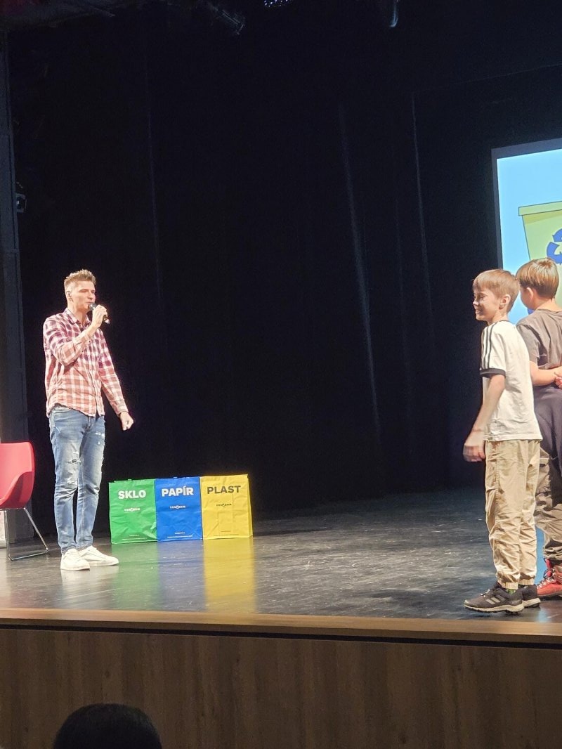 V Jiráskově divadle v České Lípě se 3. října uskutečnila vzdělávací akce Tak trochu jiná talkshow aneb Co bys měl vědět o třídění odpadů, které se zúčastnili žáci 2. stupně (nejen) naší školy. Talkshow moderoval Ondřej Urban z Rádia Evropa 2 a mezi hosty vystoupili místostarosta České Lípy, trenér mládeže Arsenalu Pavel Hradiský a influencerka a zpěvačka Adéla „Addy“ Zouharová, která během programu dvakrát zazpívala. Součástí akce byla také edukativní videa ukazující, co se děje s vytříděným odpadem a jak se dále zpracovává. Nechyběl vědomostní kvíz o ceny a závěrečné focení s vystupujícími. Děti si z akce odnesly nejen nové poznatky, ale i zážitek, na který budou vzpomínat.
