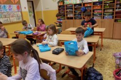 S Hurvínkem, za zdravými zoubky se vydali prvňáci a s programem „Veselé zoubky“ si užili dost legrace. Úkoly jsme zvládli a ještě jsme si odnesli domů taštičku plnou překvapení. Dejme se do toho! Nechceme být BEZZUBKY.