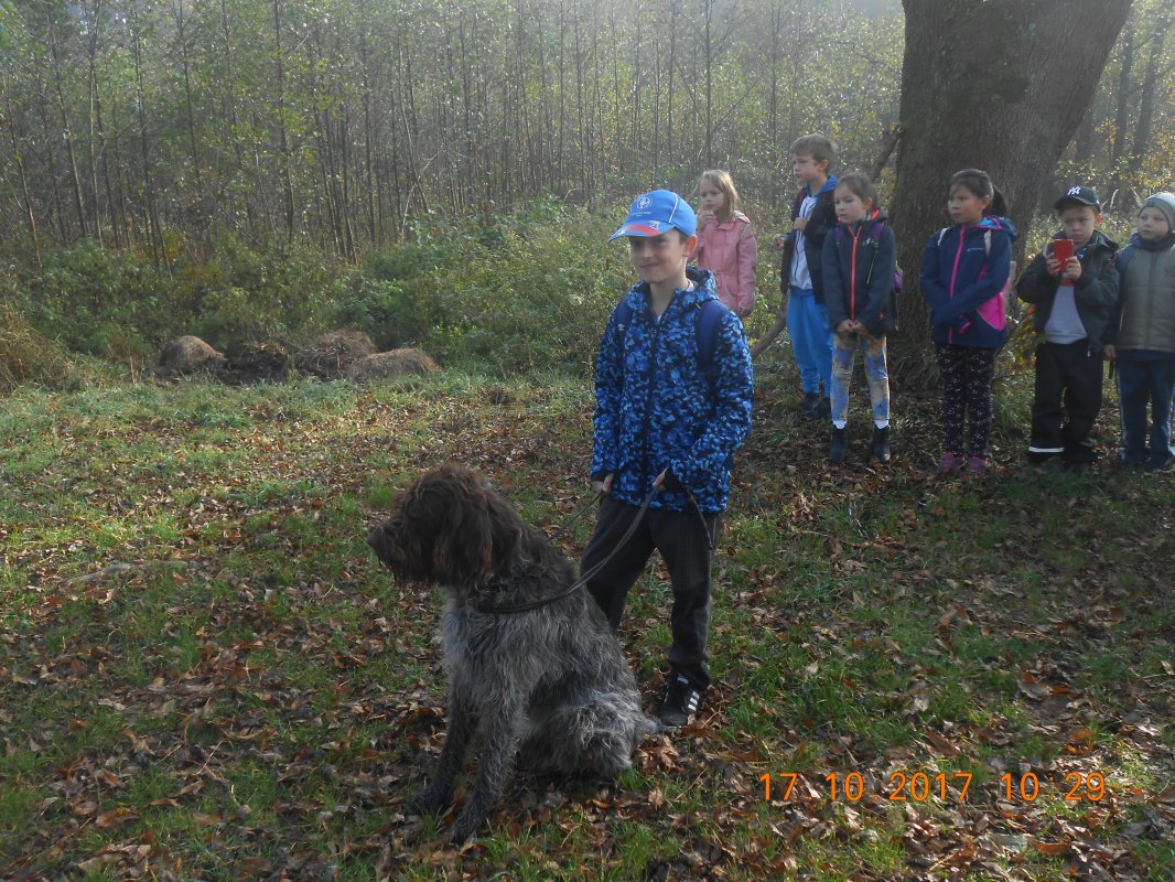 Naším průvodcem se stal pan Jaroslav Tatarkovič, který se o oboru stará. Poutavě vyprávěl o lese a jeho obyvatelích. Ukázal dětem lovecké trofeje a svého cvičeného psa, plemenem český fousek. A samozřejmě oboru, kde převažuje dančí a jelení zvěř.