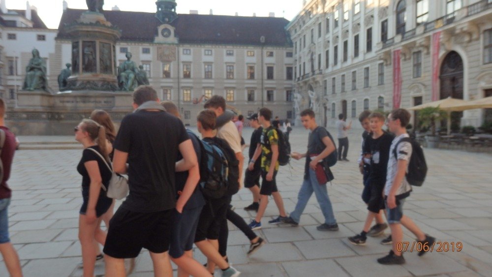 Dne 7.6. 2019 v brzkých ranních hodinách se žáci sešli, aby se vydali na dvoudenní poznávací zájezd do Vídně. Cesta před námi byla dlouhá, ale rychle utekla. Po příjezdu do Vídně jsme se ubytovali a rázem začal náročný, ale krásný den. Počasí nám přálo, a tak jsme toho mohli hodně poznat. V pátečním odpoledni jsme navštívili mnoho památek a významných míst např. Katedrálu svatého Štěpána, Mariánský morový sloup, Holfburk – hrad s palácovým komplexem, Rakouskou akademií a Španělskou jezdeckou školou, Národní knihovnu, Památník Marie Terezie. Také obrazárnu od Moneta po Picassa v Albertinu. Závěr celého patečního dne vyplnily nákupy v centru města. Ve večerních hodinách jsme se přesunuli Londýnským metrem do Prátru. Zde nás čekala spousta zábavných atrakcí, nejznámější z nich Riesenrad – obří ruské kolo, ze kterého byl velmi krásný pohled na noční Vídeň. Zakončením celého pátečního dne byla noční jízda metrem s rychlým přesunem na ubytování a následným spánkem. Druhý den nás po snídani a nákupech čekal autobus, který nás odvezl do komplexu domů s názvem Hunderfwasserhäuser na kterých rostou stromy. Dvoudenní výlet jsme završili návštěvou zahrad a zámku Schönbrunn – krásné letní sídlo císaře. V odpoledních hodinách jsme se vydali na dlouhou cestu domů. Zájezd se nám povedl. Zůstane nám mnoho nezapomenutelných vzpomínek a zážitků.