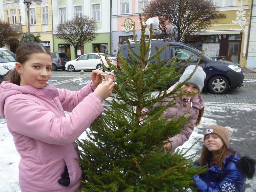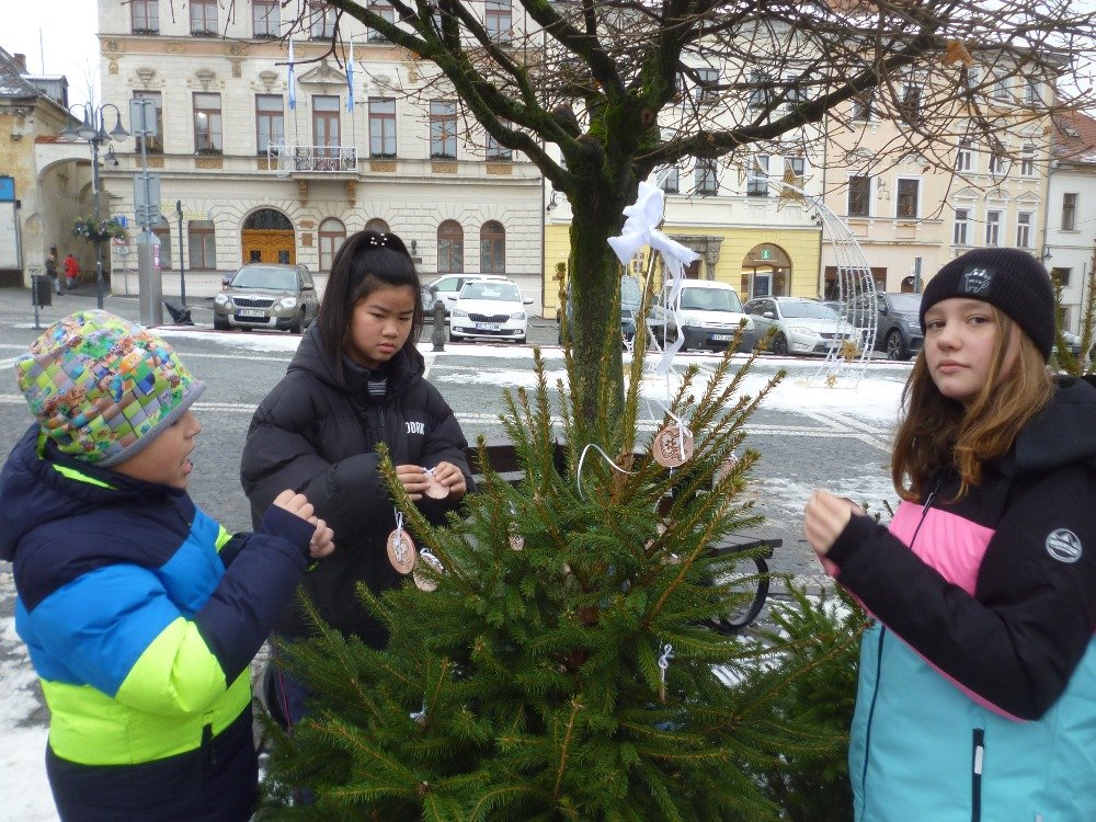 Stejně jako každý rok se i letos žáci školní družiny společně s paní vychovatelkou vydali ozdobit vánoční stromeček naší školy na náměstí T. G. Masaryka. Každá mateřská i základní škola zde tradičně prezentuje své originální vánoční ozdoby, které zpříjemňují atmosféru kolemjdoucím.