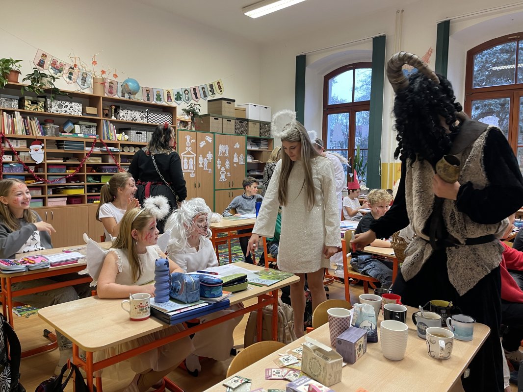 Beseda v MěK: České Vánoce od 8:30 hod. – I.; Beseda v MěK: Hrátky s češtinou od 10:00 hod. – IV. B; Divadlo Koloběžka: Trampoty čerta Huberta – II. A, II. B, III.
