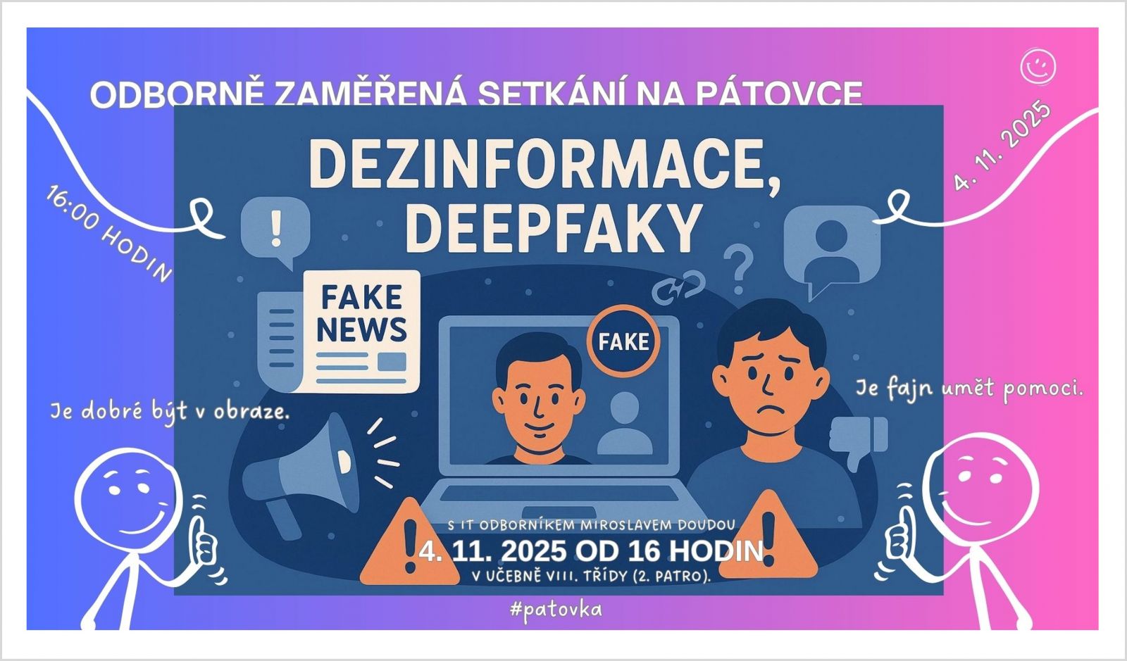Zobrazit článekV pátek 24. října se naše škola proměnila ve strašidelnou Pátovku! Kromě žáků přišla do školy i různá strašidla a další zvláštní bytosti, které se s námi chtěli učit.